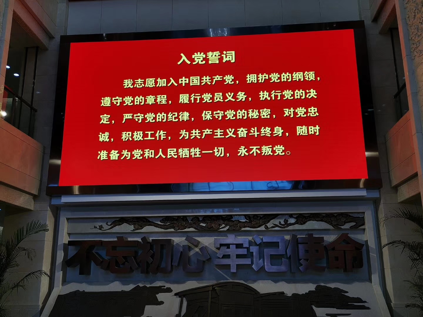 走进教育基地,一种庄严、肃穆的气氛迎面而来。步入一楼大厅,正中悬挂党旗,一盏象征“利剑”的巨大吊灯悬于头顶,以示“利剑高悬”,给前来学习的师生党员带来深深的震撼。