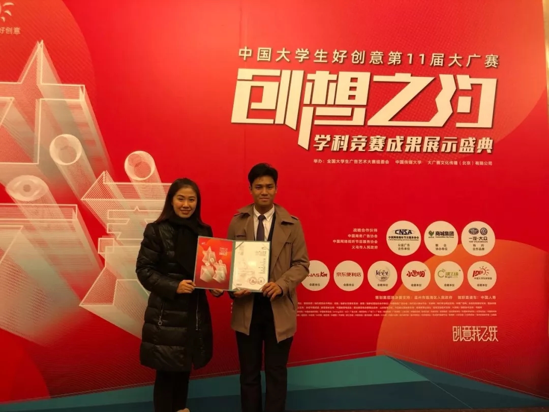 张爱凤老师指导的两个作品:马婧卓、李佩玉同学的《责任的种子、祖国的栋梁》(公益广告)以及程浩鑫、李思奇同学的《支教青春、探歌相伴》(一汽大众探歌命题),均获得了广播类全国优秀奖;王艺老师指导、王擎、邱应发、李锦仪、彭霖、邓祺同学的《杜蕾斯防守、尽管激情》(杜蕾斯命题)则获得了视频类全国优秀奖。