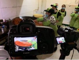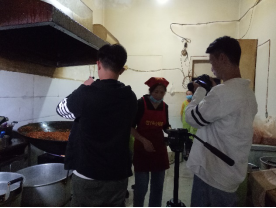 晚上,短视频小组去到了威宁与老师们汇合,之后去了拍摄了威宁四大美食店之一的"四丫头小粑粑"美食店,拍摄了小粑粑馅的制作过程。