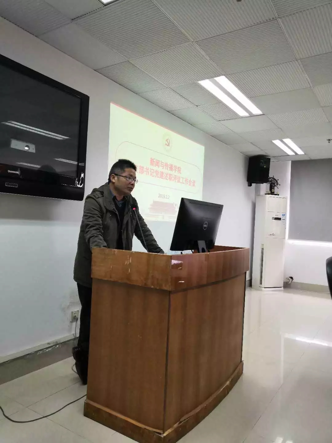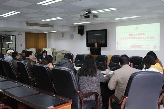 传播学系党支部书记王艺汇报了本支部的党建工作情况,从加强党员的教育与管理、加强支部组织建设、强化支部基础工作建设、加强党风廉政建设、加强支部队伍的思想建设四个方面展开了详细介绍。