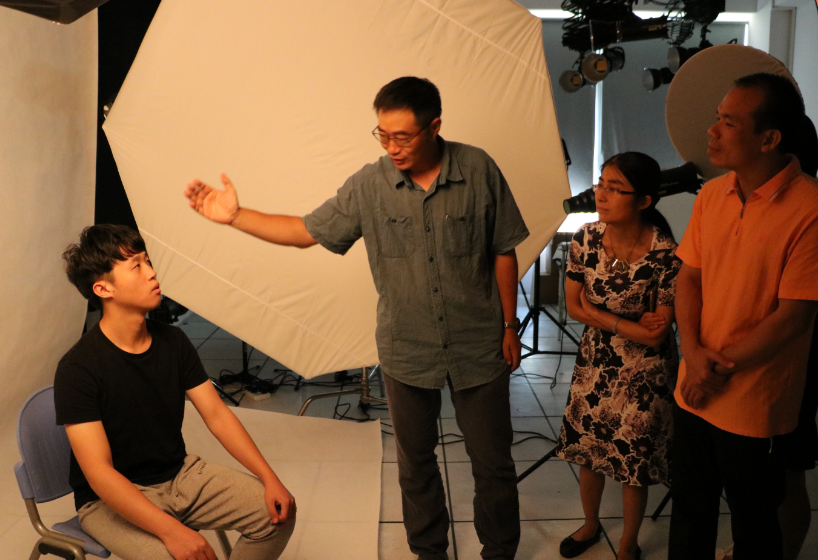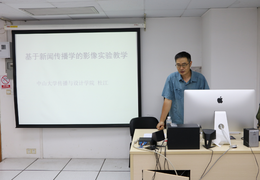 系列培训二的主讲人中山大学传播与设计学院杜江副教授,他结合自身的教学和从业经验,为我们带来基于新闻传播学的影像传播实验教学经验交流分享,并在摄影实验室传授了布光、人物摄影的技术要领。