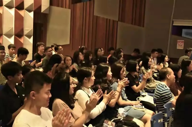 为了让同学们更好地感受声乐艺术的魅力,罗洪教授的两名学生上台用歌曲展示了流行和美声两种不同唱法。其中,花腔女高音的《春天的芭蕾》以及流行与美声相结合的《all I ask of you》给在场的师生带来了极大的震撼,其高而不尖的高音与浑厚有穿透力的低音让人惊叹。欣赏完后,罗教授邀请现场学习过声乐的同学上台一展歌喉,并一一对同学们进行点评和现场教学,使同学们获益匪浅。