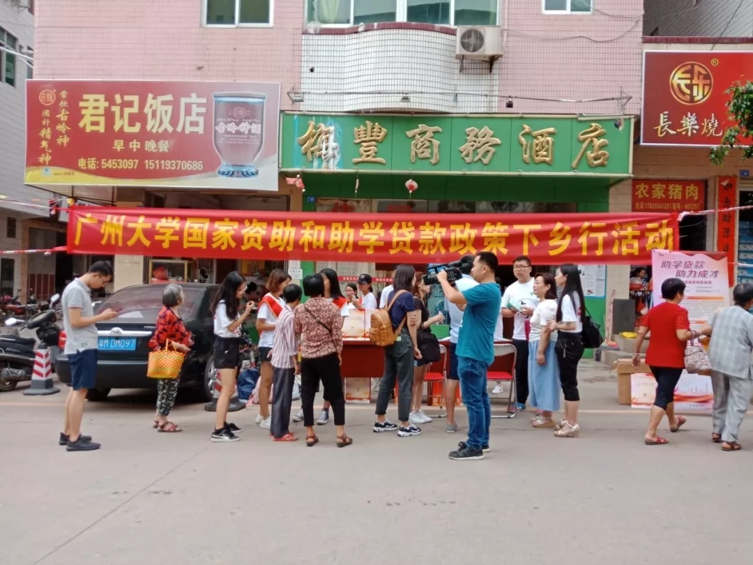 “资助政策下乡行”暑期社会实践队的部分成员,抵达梅州市大埔县大麻镇进行国家资助政策宣传活动。分队成员就国家助学贷款、国家奖助学金等政策向现场前来咨询的学生家长们进行了细致的解答。