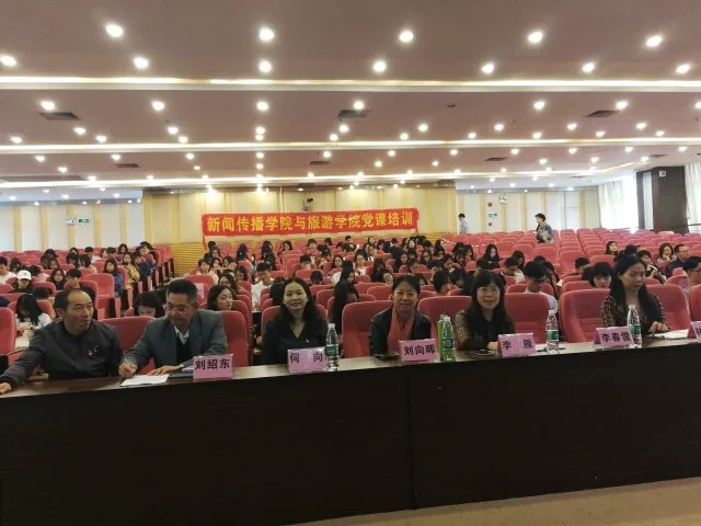 党委与旅游学院党委联合举办主题为“迈入新时代,开启新征程的动员与再动员----从十九大到全国两会”的党课培训。此次活动在学校图书馆附楼5楼报告厅举行。来自新闻学院和旅游学院的全体师生党员以及入党积极分子200多人参与了本次培训,本次党课培训特别邀请了中共广州市委党校武三中教授主讲,做爱自拍