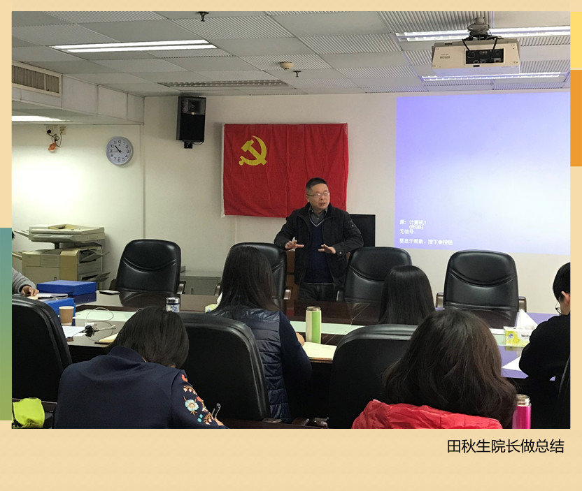 李雁书记对以上7位党支部书记的述职进行点评。她首先肯定了各位书记一年来在抓基层支部工作中的努力和付出,体现了双带头人的作用,使学院基层党支部工作呈现出新的精神面貌。李书记肯定了王艺老师将专业和党建活动结合的做法,对刘涛老师在创新党支部工作、开展特色活动、做好“三会一课”记录工作应在院内推广展示,夏清泉老师将党建、行政工作协调好,在学科建设与党建活动相结合方面更有特色,张化东老师将支部党建与提升行政管理人员的管理水平服务意识相结合,收到了一定的成效,张丽芬老师在加强暂缓就业支部同本科生党建结合上进行了一定的探索,谭丰云老师带领的本科生支部工作非常活跃,体现了学院学生良好的精神风貌,刘凤园老师在有效开展研究生党支部活动中进行了探索创新,体现出研究生支部的能力和水平。李书记说,在过去一年的基层党建工作中,我们还存在一定的问题,党支部“三会一课”制度的常态化、党建责任落实到每一个党员、党支部活动创新、党员先锋模范作用发挥等需要进一步强化,并对各支部2018年的工作提出希望。最后,田秋生院长做总结发言。他说“全面从严治党”从2017年起向基层延伸,因此基层工作责任重大,对各支部书记一年来的工作表示感谢。关于新一年学院开展工作的思路,田院长说,要做到常规工作不出问题,争取抓亮点。先抓好党员队伍,加强党员的凝聚力,围绕学科建设、工作业务、学习工作来开展更有针对性的党建工作。最后,他提出要学院要超越“2+2”的理念,寻找新的人才培养模式,加强教学与人才培养、科研,争取能出高水平的科研成果,为高水平大学建设贡献做爱自拍