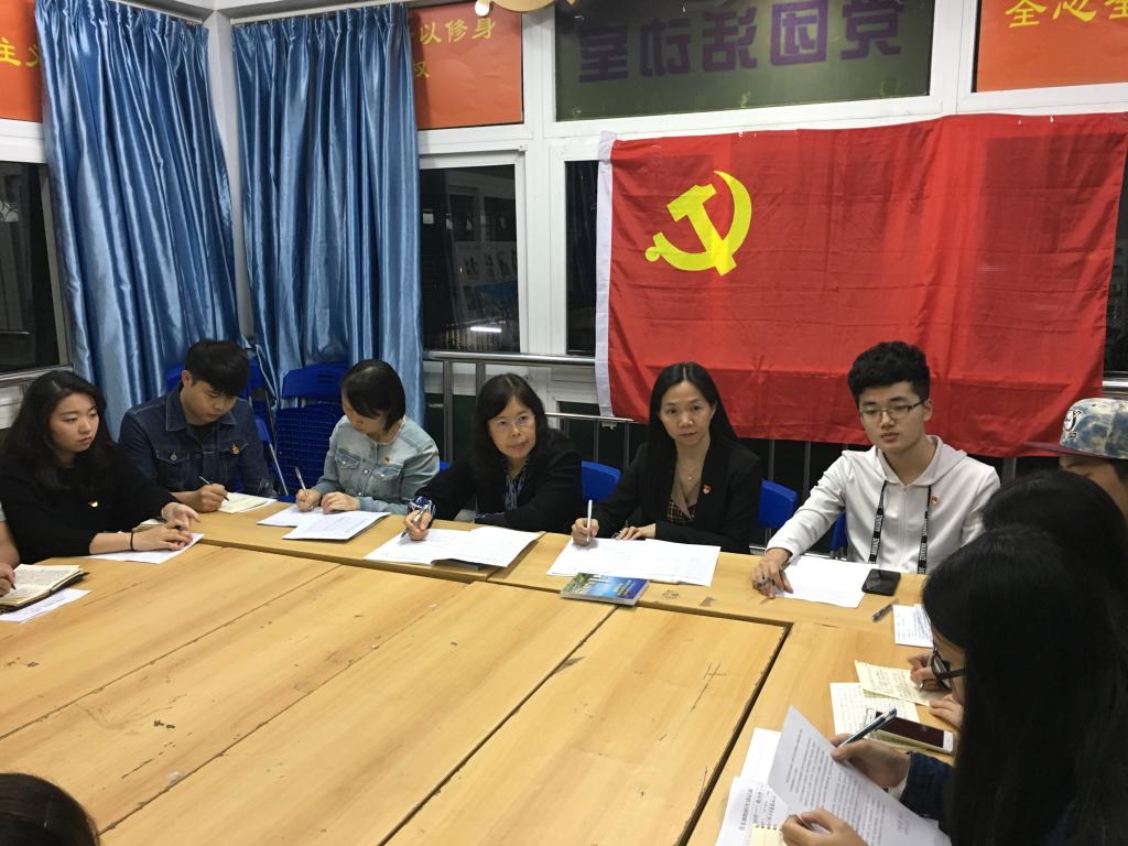 党委书记李雁,副书记林仲英,14级党支部书记谭丰云及支部成员们参加了本次会议。