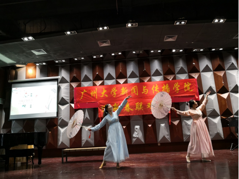 联欢会在学院领导班子的合唱歌曲《年轻朋友来相会》中拉开帷幕,现场气氛顿时活跃起来。新闻学系老师们带来的方言朗诵《南腔北调贺新春》既严肃又搞笑,多种方言汇聚在传统诗词里令人忍俊不禁;传播学系带来的诗剑配节目《春江花月夜》,在徐来老师飒爽英姿的剑舞和徐晖明教授的现场书法中,令我们领略到了传统文化的魅力;综合办、学工办联合表演的舞蹈《小鸡小鸡》活力四射、魔性十足,将联欢会带到第一个小高潮。