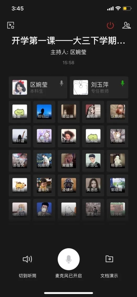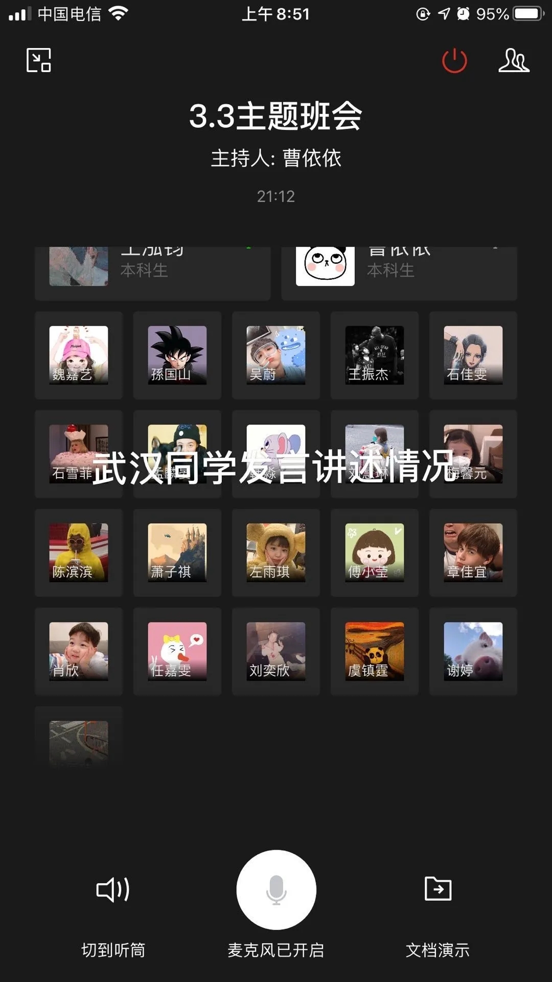 尽管因疫情的缘故大家今年还没能相聚一起,以线上这种特殊形式进行远程交流。但是这丝毫不影响大家参与这次主题班会的热情。班主任和班干部总结开学各项相关事项,同学们也积极参与,自由发表自己的感想和问题,班会在融洽的氛围中结束。