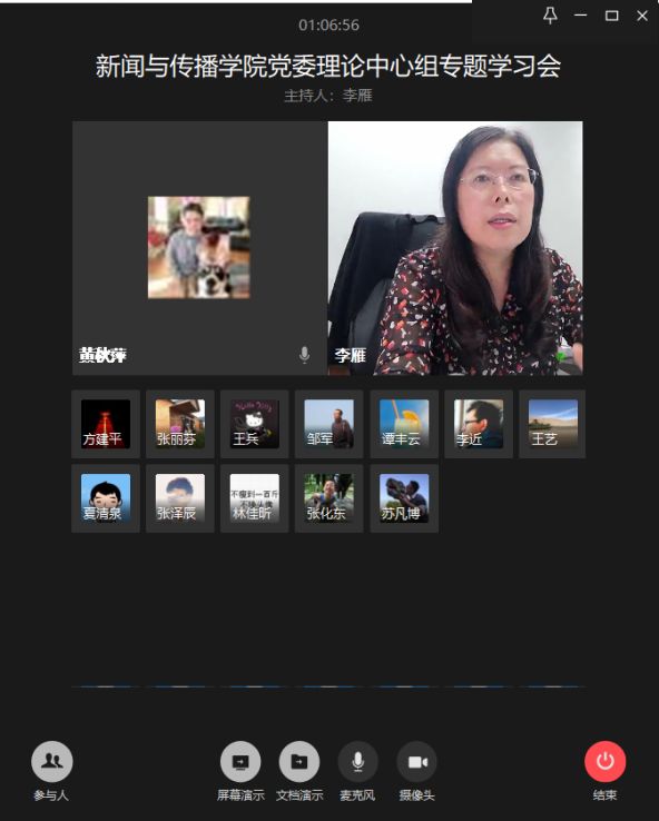 党委以线上会议的方式组织召开学院党委理论学习中心组专题学习会,学院党委委员、学院领导、党支部书记参加学习会。会议由李雁书记主持。
