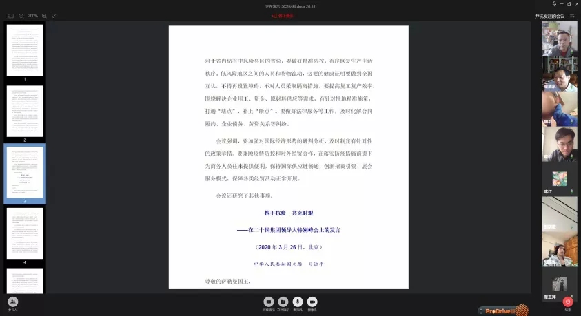 本次会议的主题为深入学习习近平总书记关于新冠肺炎疫情防控工作系列重要讲话和重要指示批示精神,以及习近平主席在二十国集团领导人特别峰会上的重要讲话。
