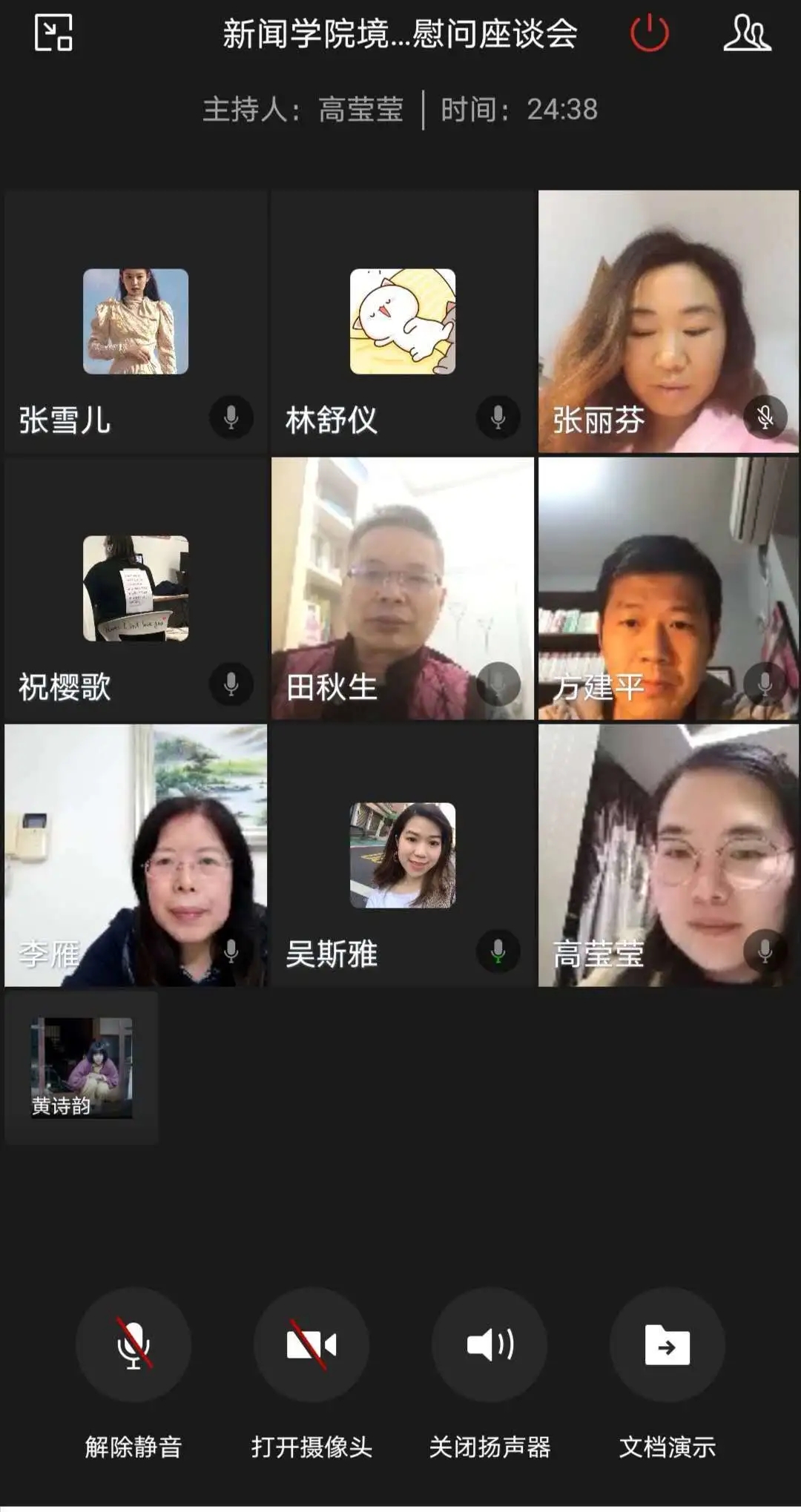 于4月1日晚上八点半,通过在线视频会议举行境外学子慰问座谈会。会议由学工办高莹莹老师主持,出席本次会议的领导老师还有做爱自拍