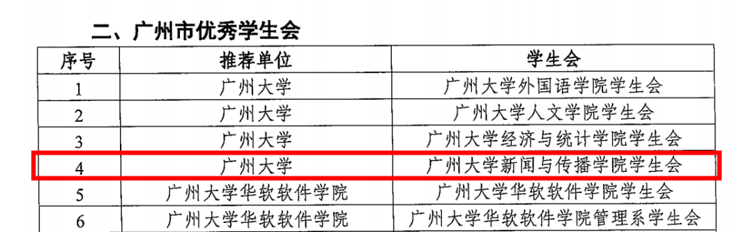 学生会获得广州市“双百工程”优秀学生会称号。