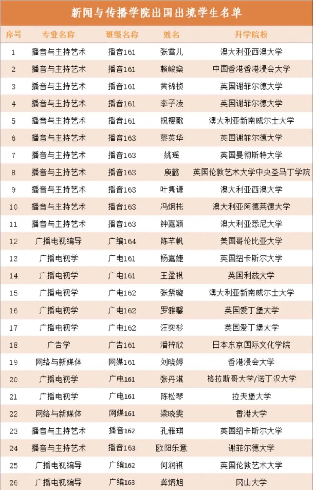 应届毕业生出国出境26人名单