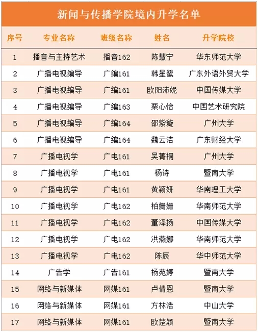 应届毕业生境内升学17人名单