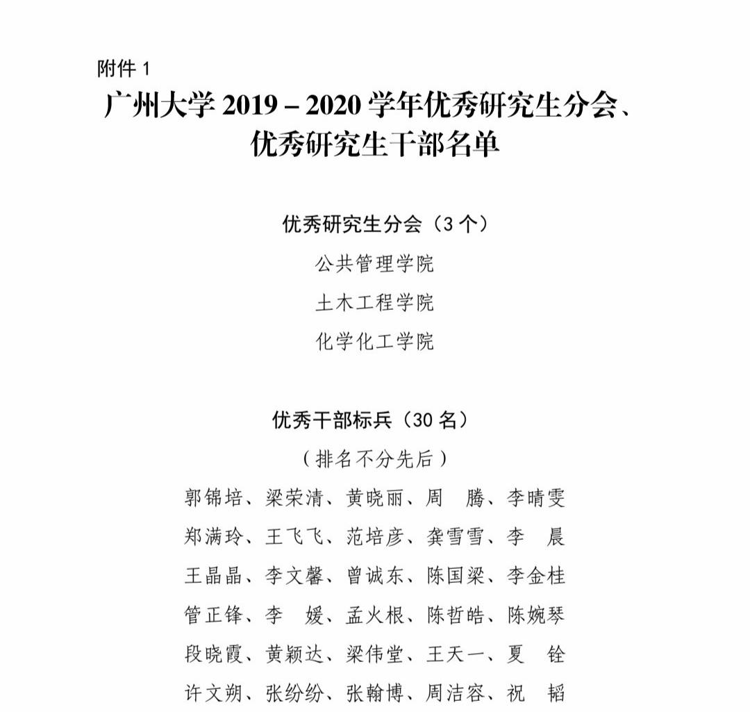 为鼓励我校研究生刻苦学习、积极进取、全面发展,按照相关文件要求,学校组织开展了 2019-2020 学年优秀研究生分会、优秀研究生会干部及 2020 届优秀毕业研究生等评选工作,授予了 30 名研究生“优秀干部标兵”称号,89名研究生“优秀干部”称号(详见附件 1);并评定 141位研究生为做爱自拍