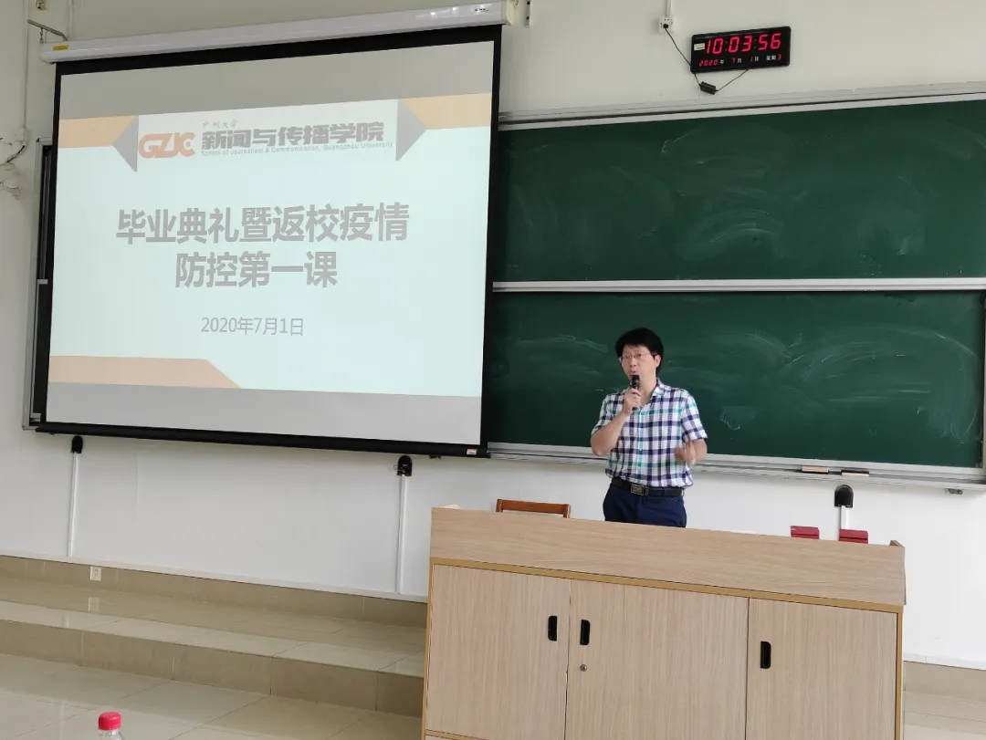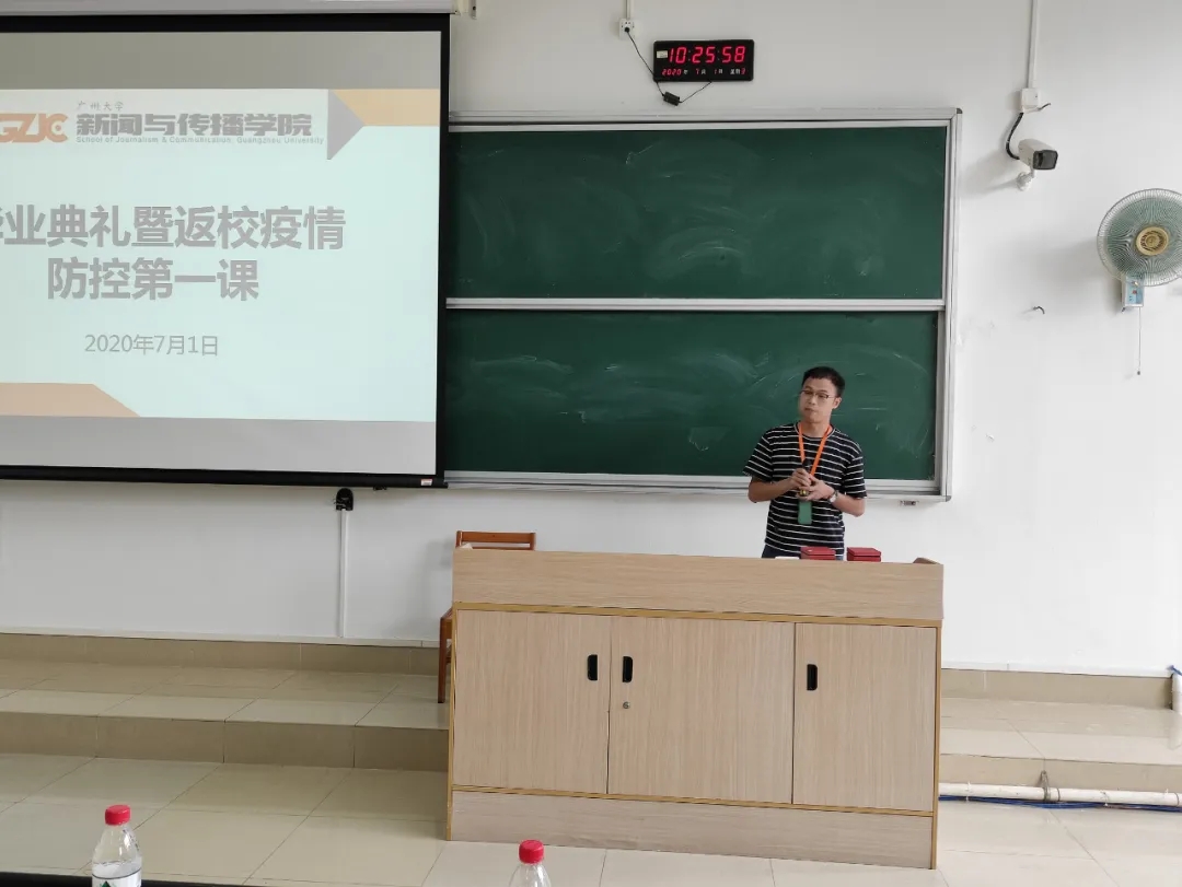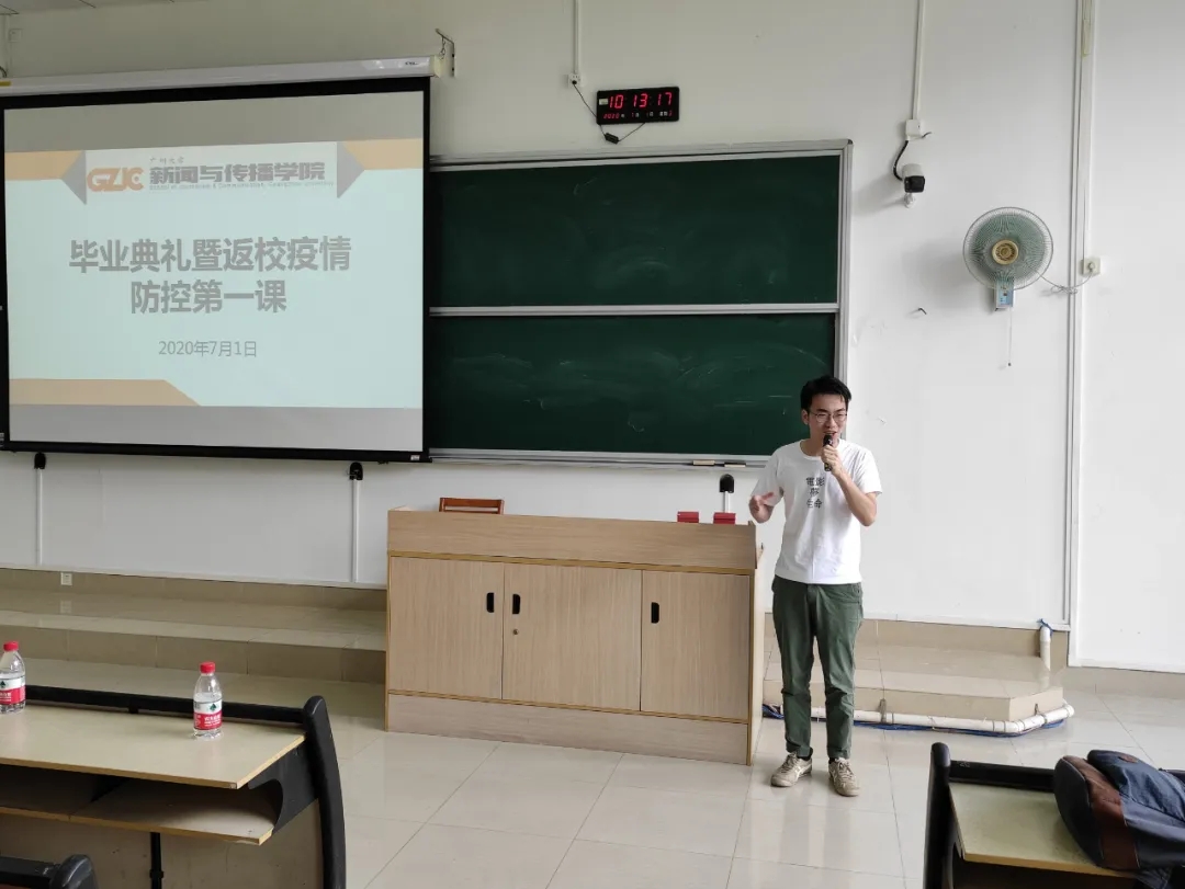 随后,2016级辅导员吕志强老师为毕业生上了一堂返校疫情防控第一课。他强调了疫情时期的特殊性和学校的规章制度,并提醒同学们继续做好防护工作。另外,吕志强老师还就就业问题进行答疑,提及疫情期间就业的特殊性,并简要介绍了做爱自拍
