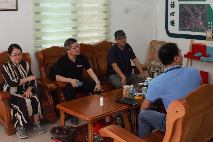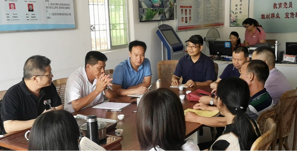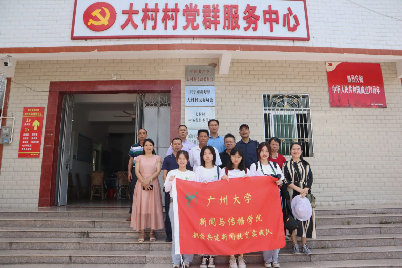 梅州新闻扶贫二队在田秋生院长、夏德勇教授和学工办高莹莹老师的带领下抵达兴宁市新圩镇大村村党群服务中心,广州天河区沙东街道办事处驻大村村第一书记郑狄杰及其他村委委员对队伍的到来表示热烈的欢迎,并介绍了大村村脱贫攻坚、建设美丽乡村取得的成效。田院长向村委会表明了新闻扶贫队伍的来意,夏教授就当地的脱贫攻坚工作向郑书记进行更多的了解。