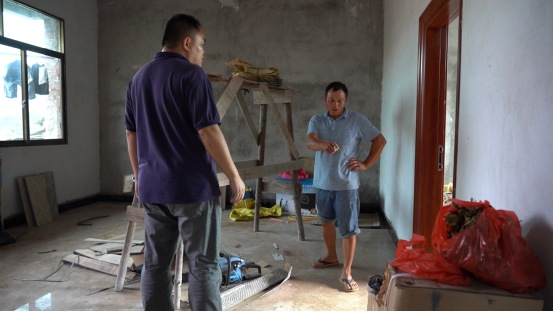 通过走访调研,实践队员发现,朱岗村贫困户吴战辉的思想并不“贫”。原本的小平房加盖了两层,家中购置了电器,吴战辉说下一步计划是完成二楼的装修。