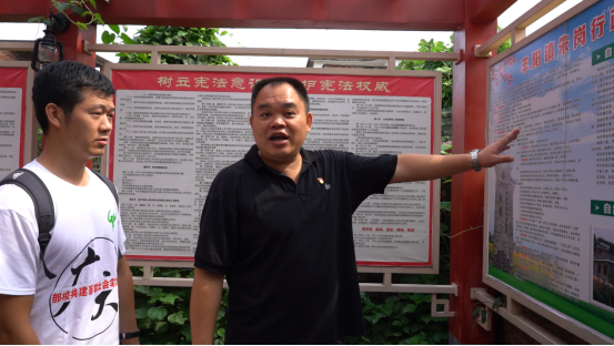 走进隔村相望的朱岗村村委会,队员们也发现一抹亮眼的红色,那就是见证当地历史发展的“红色长廊”。实践队队员站在长廊前驻足观看,聆听第一书记讲解当地的红色文化历程。这图文并茂的“红色长廊”给广大群众和党员干部提供了学习的场所。传承红色文化,始终牢记使命。