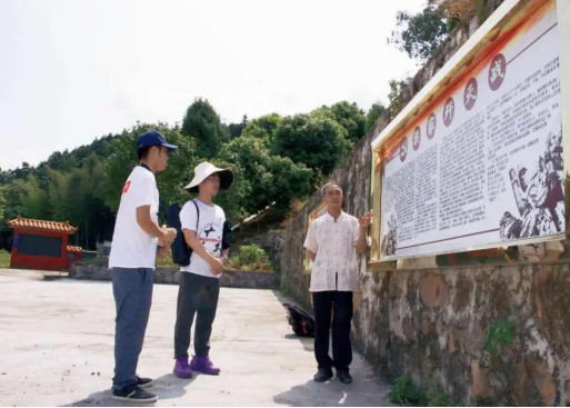 梁家村是解放连阳战争中“梁家水歼灭战”的所在地。“1949年发生的梁家水歼灭战,中国人民解放军牺牲官兵22人”,丰阳古村文化协会会长吴岐青站在红色宣传栏前为队员们讲述这段历史。在革命烈士们的事迹中,实践队员们深刻感受到当下和平来之不易,应当倍加珍惜。