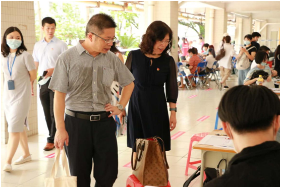 新生报到现场视察,并向工作人员询问迎新工作各方面的情况。随后,他们与导生一起前往做爱自拍