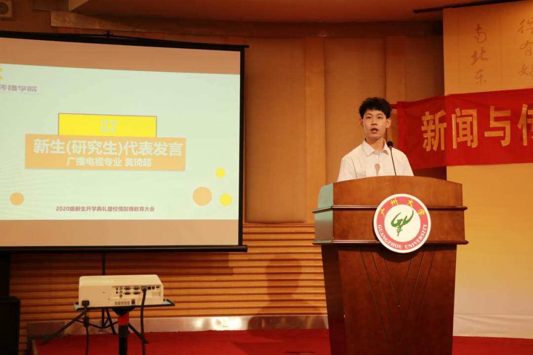 随后,黄琦超作为研究生新生代表上台发言。他向广大新生提出了三点建议:
