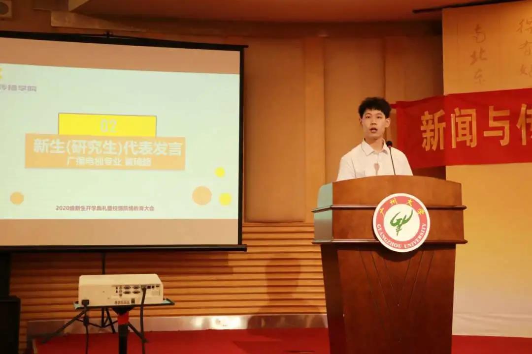 大家好!我是广播电视专业的研究生黄琦超,很荣幸作为新生代表发言。今年是不同寻常的一年,新冠肺炎疫情扰乱了大家正常的学习生活,但大家坚持梦想,不懈奋斗,以足够的智慧和勇气应对挑战,经受住了疫情和升学的双重考验,彰显青春向上的力量和过人的实力。在新学期即将开始之际,我想提三点展望,与大家共勉: