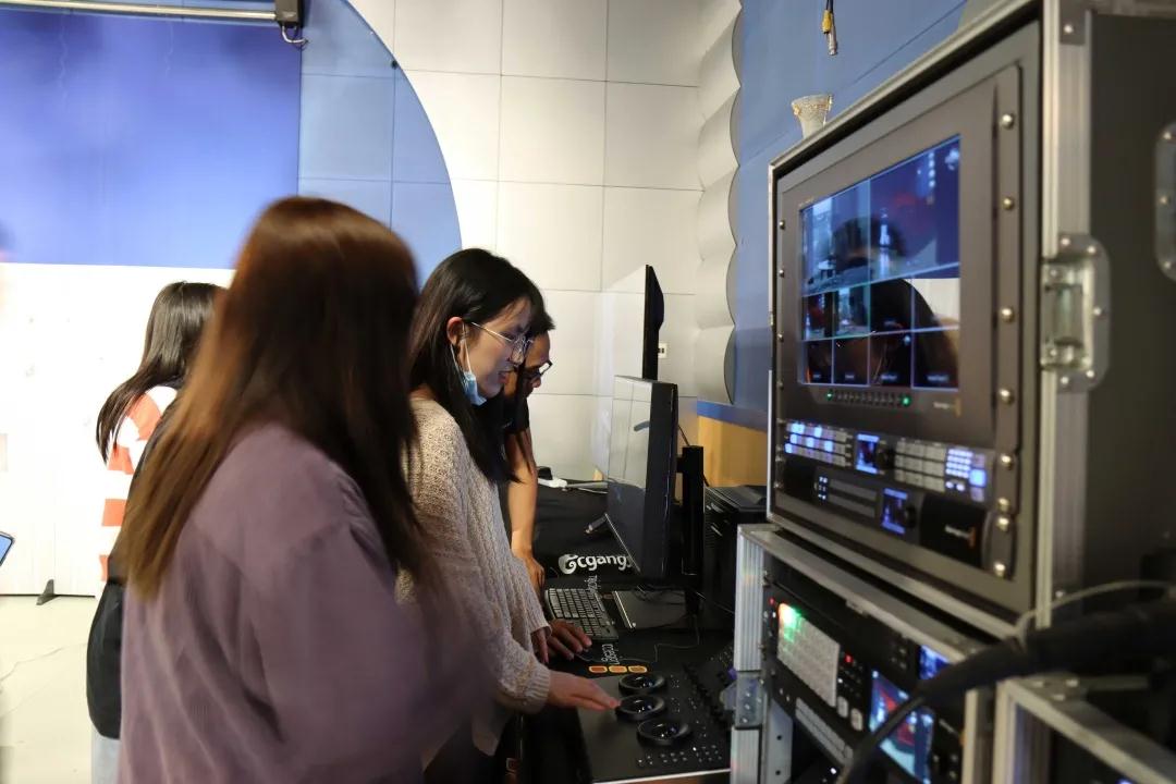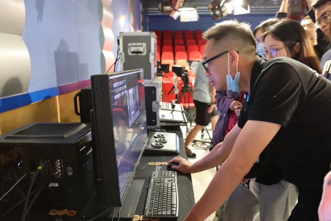 技术工程师用Brainstorm Infinity现场介绍了虚拟演播厅在新闻联播,演唱会现场和电竞游戏的应用,包括演播厅背景的转换,碎片化的转场等内容,现场邀请同学们进行体验。