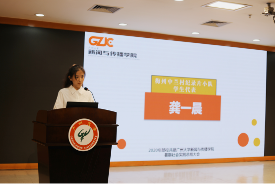 龚一晨同学作为新闻扶贫梅州队学生代表发言。她谈到,当地村干部为脱贫攻坚辛勤劳动和村民的淳朴好客让她印象深刻,也令她对2020年全面建成小康社会和决战脱贫攻坚有了更深的了解。最后她说:“这段经历虽然苦涩,但是却有难忘而持久的回甘,同时也衷心祝愿,在未来我们的做爱自拍