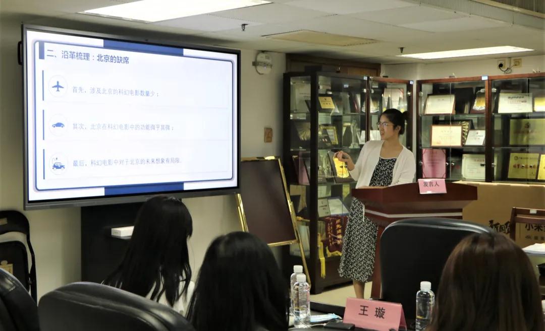 孙文霞同学以“中国科幻电影中的北京形象及其视听建构”主为题展开演讲,演讲主要从历史渊源:北京的在场、沿革梳理:北京的缺席、未来展望:北京的参与三个方面展开。