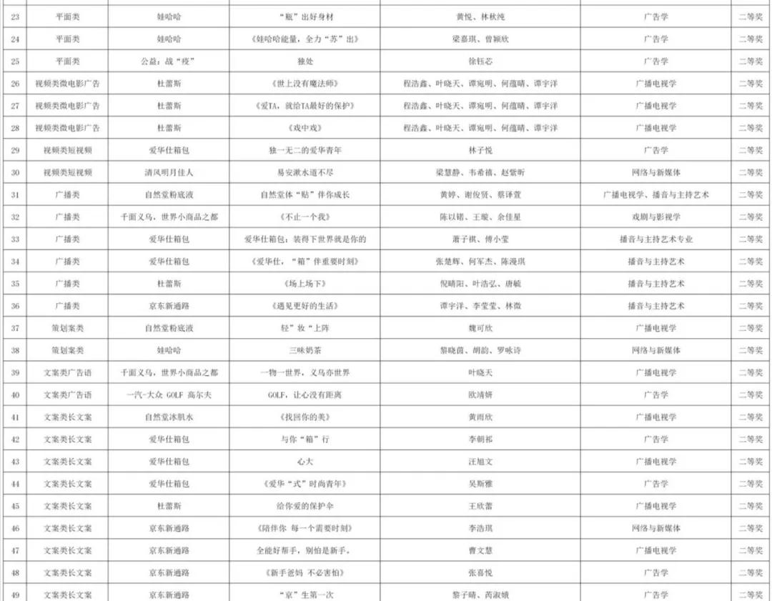 省级二等奖名单