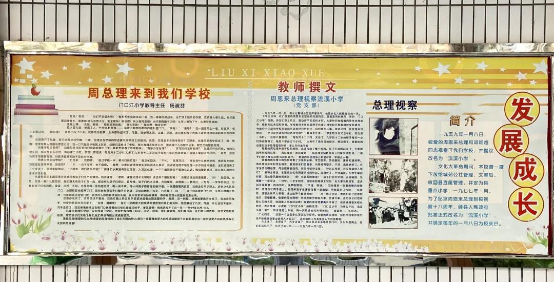调研团队走进流溪小学探访,我们看到,学校的文化长廊上展出了当年学校教导主任杨淑芬所撰文字。据杨主任的文字所记录,周恩来总理关怀学生的劳动时间、关心课室的光亮情况、赞扬墙报上孩子们的诗歌和漫画,视察时对于学校的教育工作,事无巨细,他都在逐一了解后提出自己的建议。