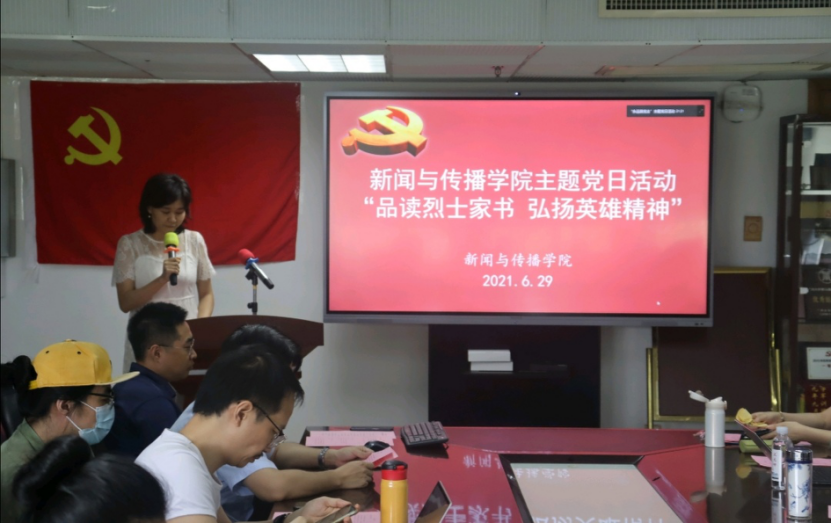 于6月29日下午13:40在文逸楼605会议室组织开展了以“品读烈士家书,弘扬英雄精神”为主题的党日活动。本次活动由肖思为老师主持,全体党员以线上线下相结合的方式参加了本次活动。