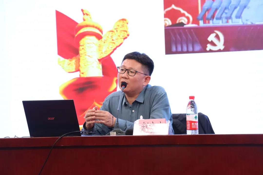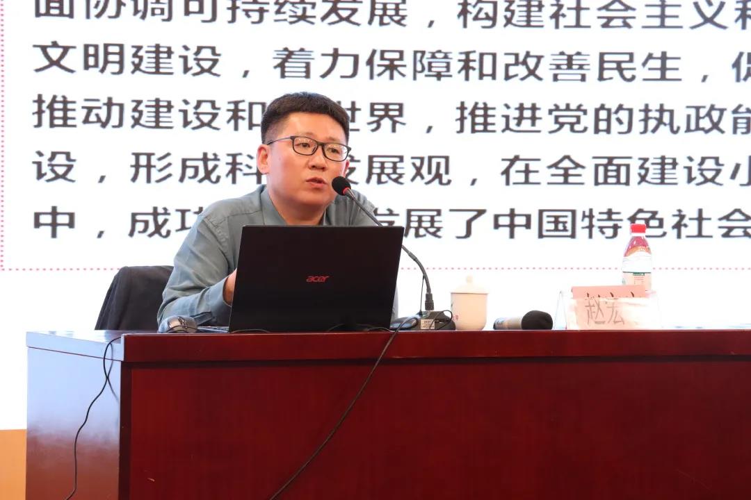 赵宏宇教授首先给师生们介绍了党的十九届六中全会审议通过《中共中央关于党的百年奋斗重大成就和历史经验的决议》(简称《百年党史决议》)的内容与框架,细致的分析了党中央出台《百年党史决议》的背景原因,阐释了《百年党史决议》的政治意义。这份决议,是一个百年大党总结历史、面向未来的宣言,映射出一个矢志民族复兴伟业政党的强烈责任与历史担当,它的真理之光,将耀射未来、日久弥新。