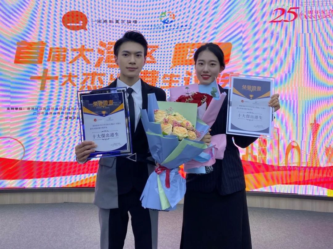▲孙国山、陈碧霞获得“首届大湾区十大杰出港生”荣誉称号