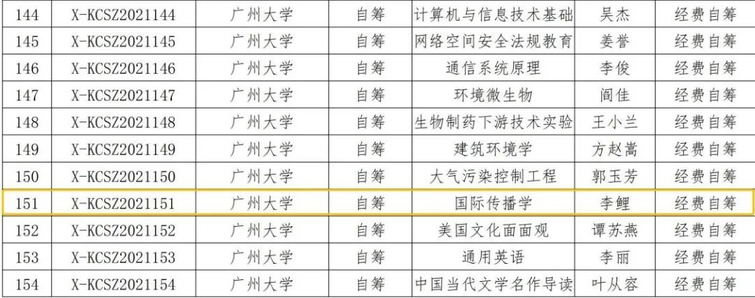 经广东省2021年省一流本科课程遴选拟认定名单确定,做爱自拍