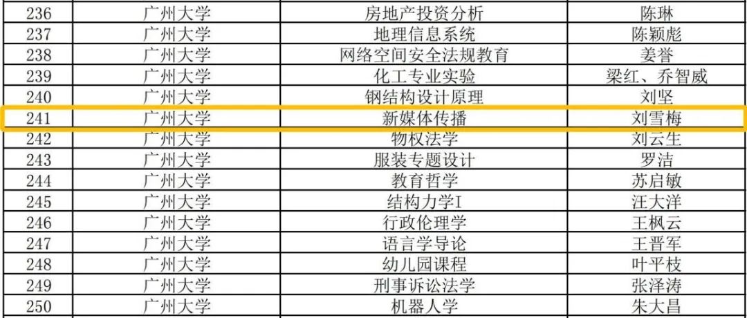 刘雪梅老师的《新媒体传播》课程荣获线下一流课程,田秋生老师的《马克思主义新闻理论基础》课程荣获线上线下混合式一流课程。