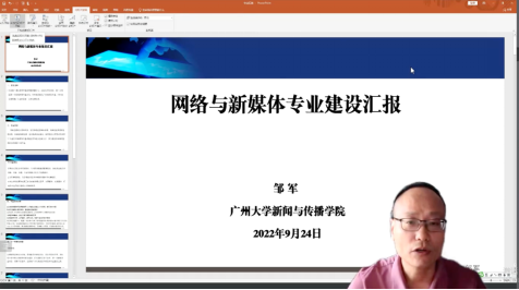 网络与新媒体专业负责人邹军教授从历史沿革、专业定位、专业特色与专业综合改革四个方面介绍了网络与新媒体专业的建设情况,从人才培养模式改革、课程思政教育教学改革、教学团队建设、课程教材资源建设等四个方面提出了下一步建设思路。