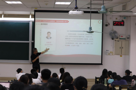 讲座伊始,田秋生院长向同学们详细介绍了《习近平谈治国理政》第四卷的内容组成、逻辑主线、时代背景及现实意义,让同学们对第四卷内容有了基本了解。田秋生院长表示,《习近平谈治国理政》第四卷代表了当代全体中国共产党人对当今中国、当今世界、当今时代的理解与应对方案,是当代共产党人不断应对风险与挑战而形成的智慧结晶。