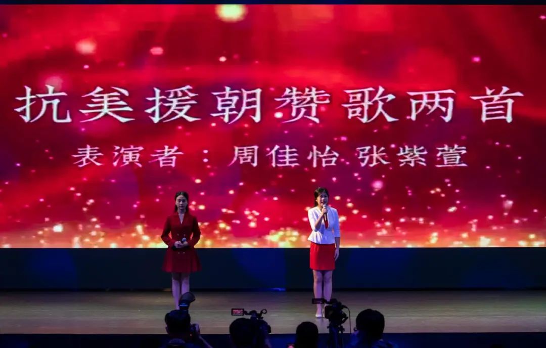 ▲周佳怡、张紫萱朗诵诗歌《抗美援朝赞歌》