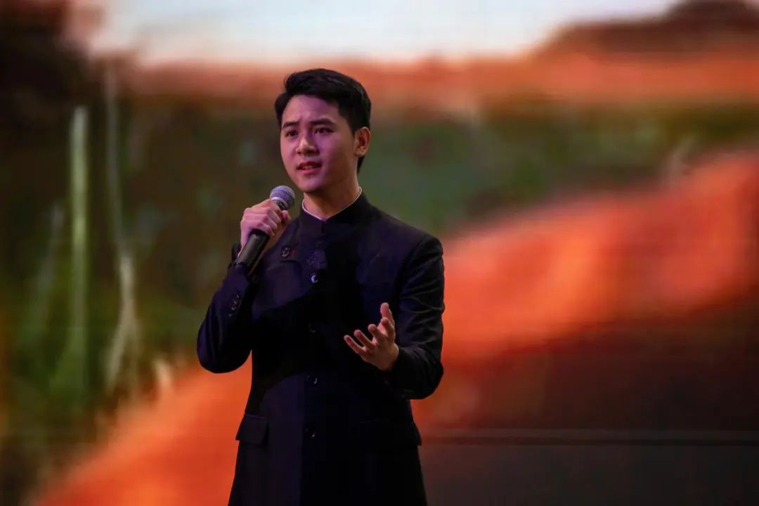 “我想轻嗅泥土的芬芳,我想亲见晨曦的灿烂”,黄豫阳和杨鹏程用细腻真挚的触角朗诵散文《平凡的魅力》,表达“追求平凡而不平庸,脚踏实地”的人生态度。