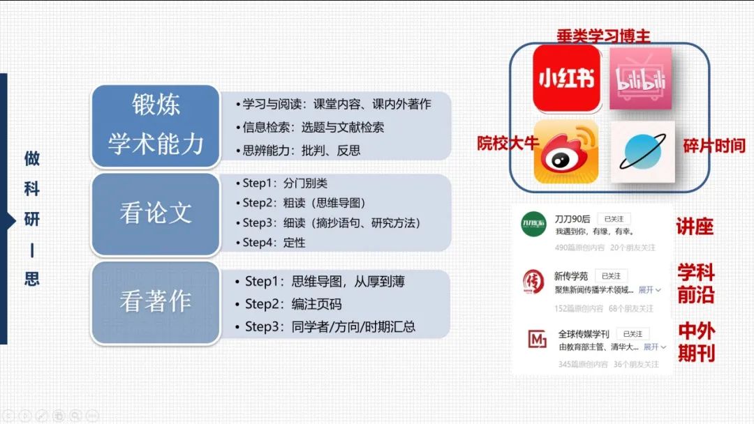 4月11日下午,广播电视学专业(以下简称“广电”)19级本科生王映骅、廖勉钰两位学姐在文新楼524为广电22级的同学们开展了一场主题为“学与思,散发更耀眼的光”的分享活动,旨在使广电新生更好地思考、学习并开展实践规划。新闻学系主任李鲤老师主持了分享会。