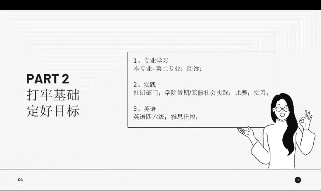 廖勉钰学姐认为本专业的学习是打好基础的关键,在平时一定要注重好本专业的学习。在专注好本专业的前提下可以去申请第二专业,掌握更多的知识与技能。但课本上的知识终究是有限的,学习期间还要多阅读和参加实践,在这个过程中多积累经验并让自己的能力得到提升。她还补充到,如今世界是一个“地球村”,不管是基本的交际还是工作上的项目对接,英语都至关重要,拥有良好的英语水平会让我们在学习和职业发展道路上受益匪浅。