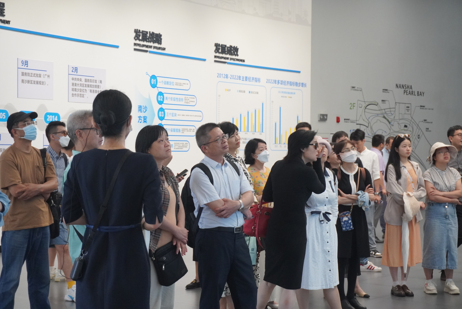 南沙明珠湾开发展览中心是南沙开发建设的形象展示窗口。明珠湾起步区建设是南沙发展的缩影。在讲解员的指引和介绍下,老师们对南沙及明珠湾的建设规划有了比较全面的了解,看到了南沙及粤港澳大湾区的未来,也对《南沙方案》有了更直观的认识。