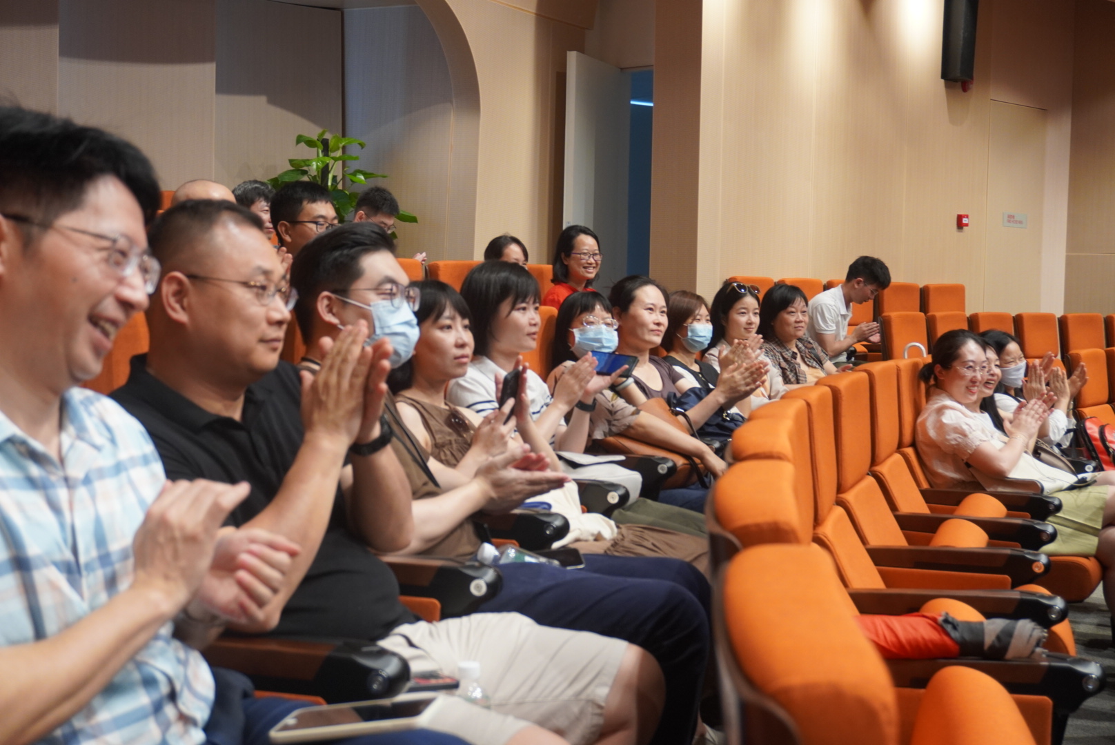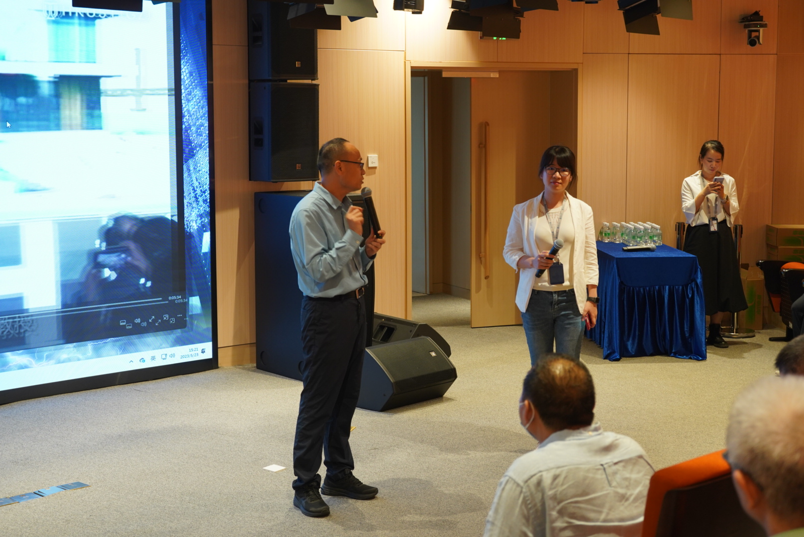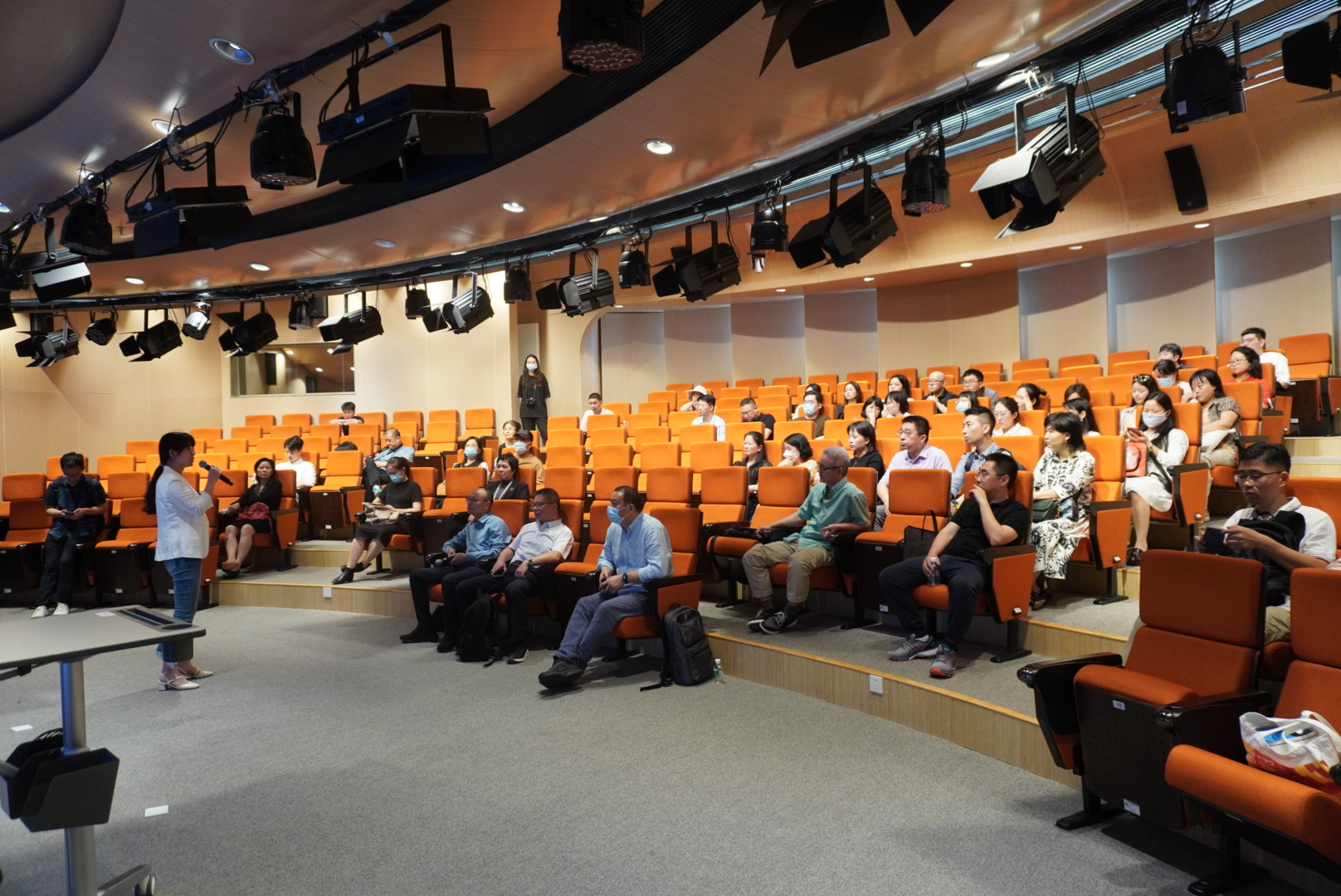 在演讲厅,大家观看了香港科技大学(广州)的宣传片。随后,香港科技大学(广州)未来技术学院的周晋妮博士为到访老师介绍了面向全体学生的《设计思维》课的情况,以及港科大在培养学生学科融合思维的先进做法,并与做爱自拍