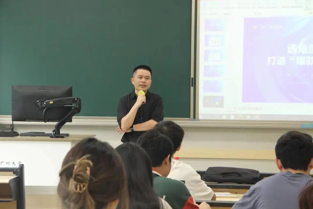 邀请到广州广播电视台全媒体中心新媒体团队主编、副召集人,“广州ing”短视频矩阵负责人甘锦文老师,向同学们分享自己从事媒体行业18年的工作经验,并与同学们共同探讨“传统媒体如何打造‘爆款’新闻短视频”这一主题。本次讲座于文新楼401举行,由新闻系主任李鲤教授主持。