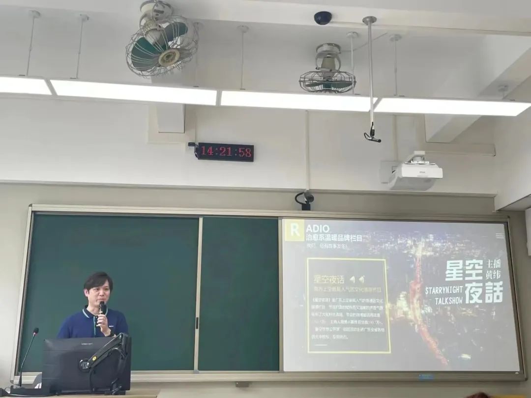 邀请到了2006级优秀毕业生,广东广播电视台广播融媒中心(广东新闻广播)融媒运营监制、著名主持人黄纬,向同学们分享自己作为广播行业的从业者,对于广播节目随时代发展变化的观察,以及对于广播节目创新的思考与经验。本次讲座于文新楼203举行,由新闻学系主任李鲤教授主持,李近老师出席。