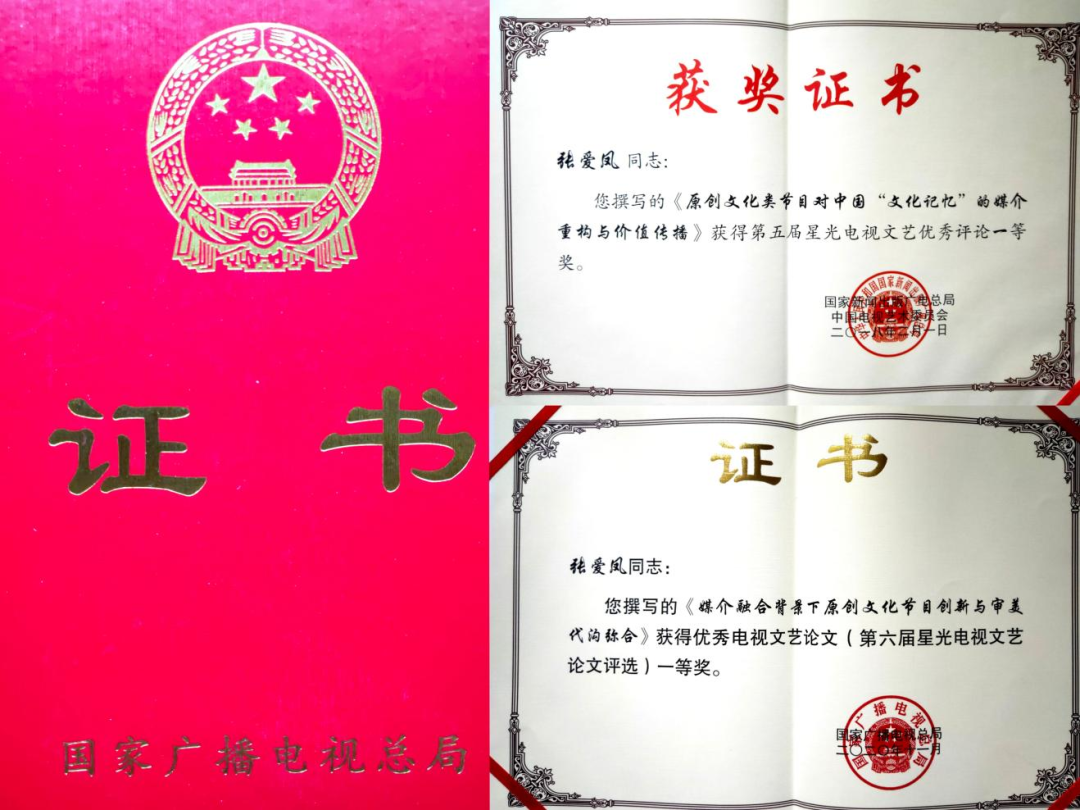 ▲张爱凤教授的原创文化节目研究成果获国家广电总局表彰