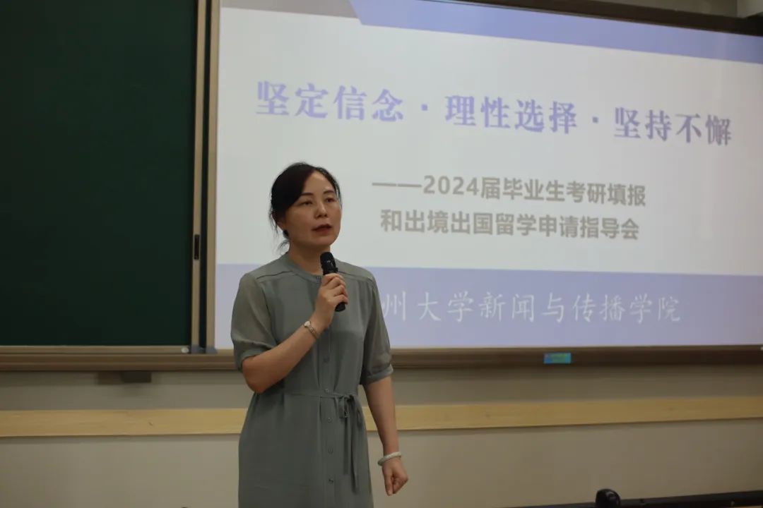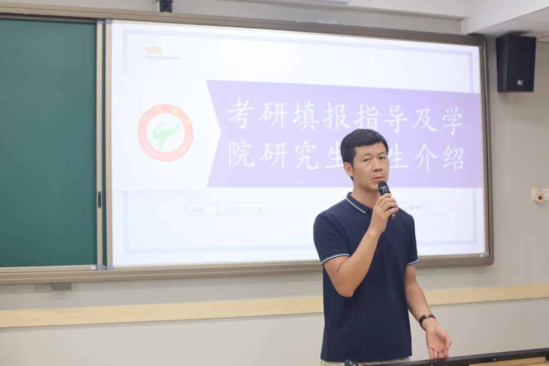 2024届考研填报与出国留学申请指导会在文新楼523顺利举行。学院副院长张爱凤教授、党委副书记方建平老师等出席分享会。分享会由院学工办主任邹演枚老师主持。