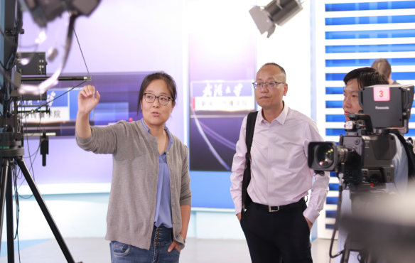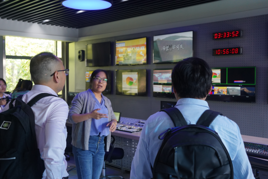 随后,访学师生在赫爽老师的带领下参观了演播室、融媒体实验室、摄影棚、录音室、暗房等先进实验室。